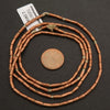 These handmade Ethiopian copper beads showcase traditional African craftsmanship with their rustic, antique appearance. Each bead is individually crafted, featuring a slightly irregular, hand-hammered texture that adds to their unique charm. These beads are commonly used in tribal and bohemian-style jewelry.