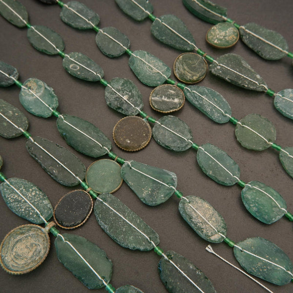 Our Roman Glass Beads collection encompasses various forms of ancient glass bangles, nuggets, disks, and more. Adding roman glass beads to your jewelry designs is a great way to give it an earthy and rustic appearance. Our Roman Glass Beads collection encompasses various forms of anci