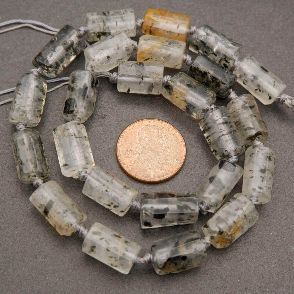 Black Mica in Quartz · Smooth · Freeform Tube · 8mm