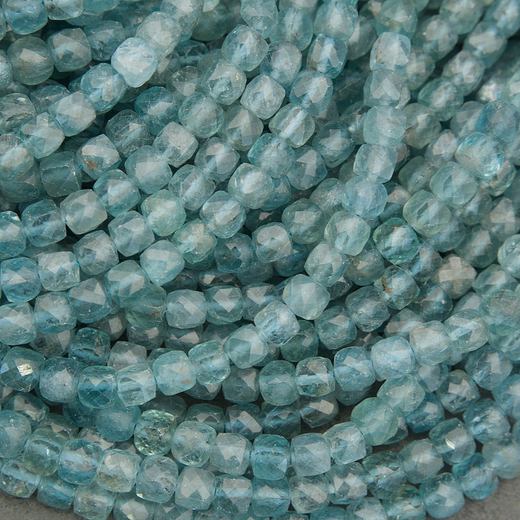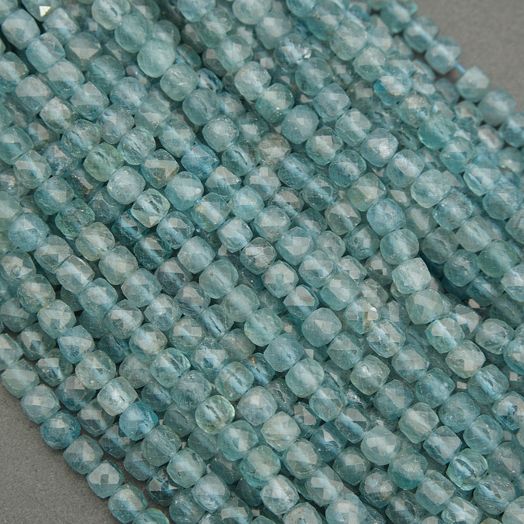 Blue Green Apatite · Microfaceted · Cube · 4mm