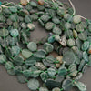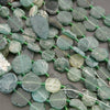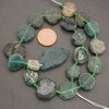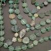 There is a lot of variation in these strands due to the rough-cut nature of the beads. In general, the coin beads will fall within the graduated 13-19mm range, though some strands may be more centered in the range, closer to 16-18mm. Thickness varies from 4.5mm to 6.5mm.